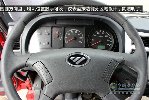 該車(chē)的方向盤(pán)為四副方向盤(pán),四副方向盤(pán)被認(rèn)為是最適合駕駛員操控的方向盤(pán),喇叭位置觸手可及,可以及時(shí)對(duì)周?chē)?chē)輛進(jìn)行警示。