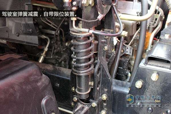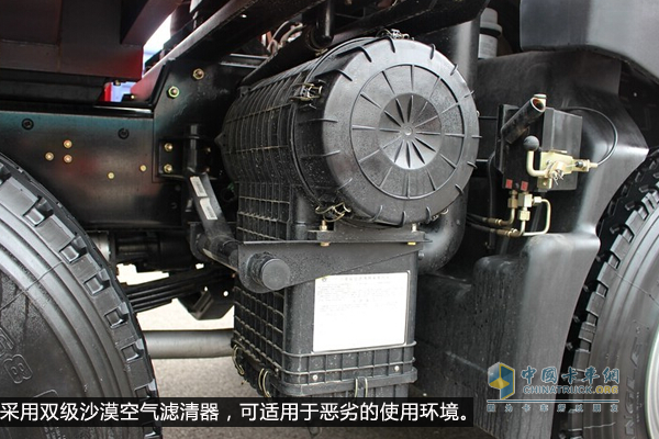 由于工程自卸車(chē)的使用工況一般都比較惡劣,該車(chē)的駕駛室采用了彈簧減震,并自帶限位裝置,可以在惡劣路段行駛時(shí)降低行駛的顛簸感,駕駛更加舒適;空氣濾清器也采用了雙級(jí)沙漠空氣濾清器,可以更好的防護(hù)灰塵進(jìn)入發(fā)動(dòng)機(jī)和駕駛室。