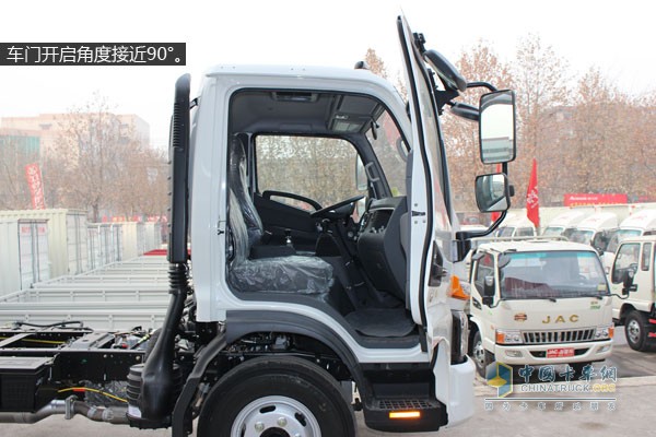 在江淮新駿鈴的車門(mén)開(kāi)啟時(shí)也可以看到細(xì)節(jié)的設(shè)計(jì),開(kāi)啟角度接近90°,更方便體型較大的駕駛員進(jìn)出,還配有夜間蹬車燈。我們都知道,駕駛員非常辛苦,夜間工作是常有的事,這樣一盞等車燈,將更好的保護(hù)駕駛員蹬車安全,為駕駛員在黑夜點(diǎn)亮一盞暖心的明燈。