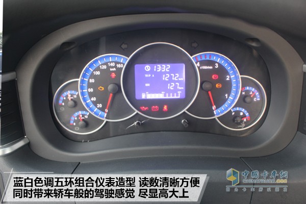 組合儀表采用經(jīng)典“五環(huán)”造型,時(shí)尚藍(lán)色熒光與雅白線條和諧搭配,營(yíng)造一流的內(nèi)飾感官享受,盡顯高大上。