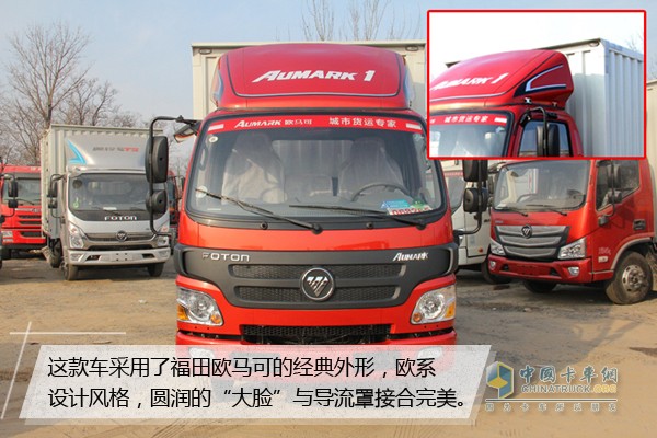 這款車采用了福田歐馬可的經(jīng)典外形,歐系設(shè)計(jì)風(fēng)格,圓潤的“大臉”與導(dǎo)流罩接合完美,在車頂導(dǎo)流罩上的設(shè)計(jì)也進(jìn)行了優(yōu)化,使導(dǎo)流罩和貨箱銜接更加完美,有效的降低了亂流干擾和行車風(fēng)阻,節(jié)油理念處處到位。