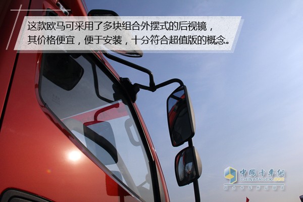 值得一提的是,這款歐馬可采用了多塊組合外擺式的后視鏡。與門鏡相比,外擺鏡觀察清洗,多篇鏡面組合,減小了視野盲區(qū),對于走走停停的城市,優(yōu)勢明顯;其次就是其價(jià)格便宜,便于安裝,十分符合超值版的概念。