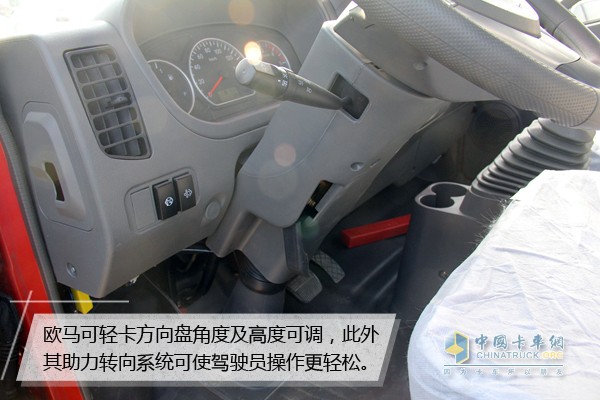 歐馬可輕卡方向盤角度及高度可調(diào),可以根據(jù)駕駛員自己的身高和習(xí)慣調(diào)節(jié)適合的高度,此外其助力轉(zhuǎn)向系統(tǒng)可減輕駕駛員動作在轉(zhuǎn)向盤上的操作力,使駕駛轉(zhuǎn)向輕松平穩(wěn)。