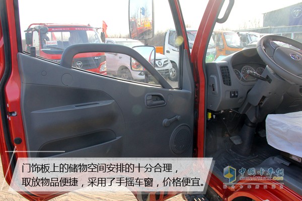 我們能夠看到門飾板上的儲物空間安排的十分合理,省去了不規(guī)則儲物盒的設(shè)計(jì),這樣放取物品更加便捷。采用了手搖車窗,在方便性上要比電動車窗差,但在價(jià)格上會比其便宜很多,對于追求性價(jià)比的用戶是個(gè)不錯的選擇。
