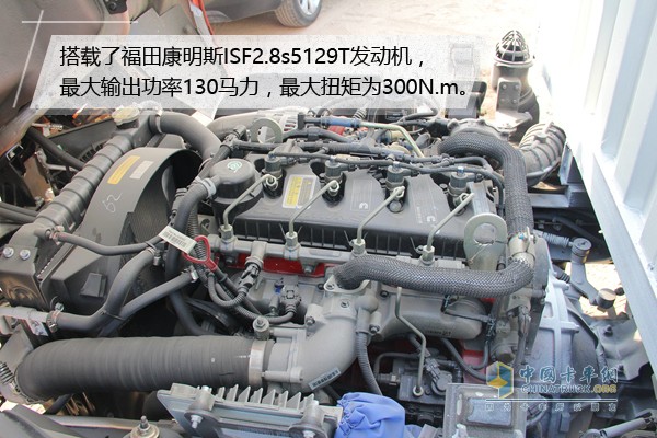 這款歐馬可搭載了福田康明斯ISF2.8s5129T發(fā)動機(jī),最大輸出功率130馬力,最大扭矩為300N.m。