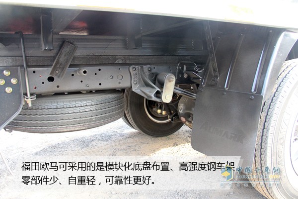 福田歐馬可采用的是模塊化底盤布置、高強(qiáng)度鋼車架,零部件少、自重輕,可靠性更好。尤其是其加強(qiáng)型高速全鉚底盤,采用新型鈦鋼材料,底盤強(qiáng)度得到了大幅度提升。