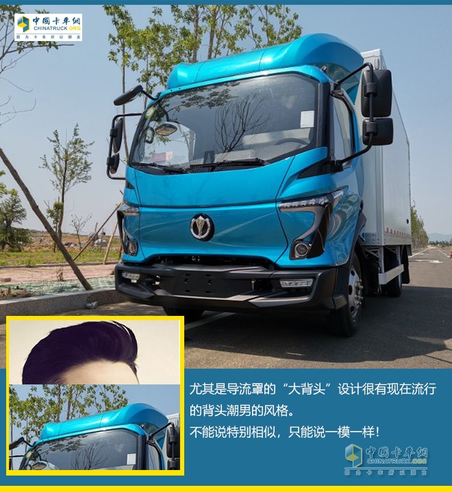 一張圖就能炸了卡車圈的鍋,別的不說飛碟W5的外觀確實是新穎脫俗。很佩服設計師的腦洞,對流線形的巧妙運用,飛碟W5讓人眼前一亮而又不覺浮夸。尤其是導流罩的“大背頭”設計很有現(xiàn)在流行的背頭潮男的風格。