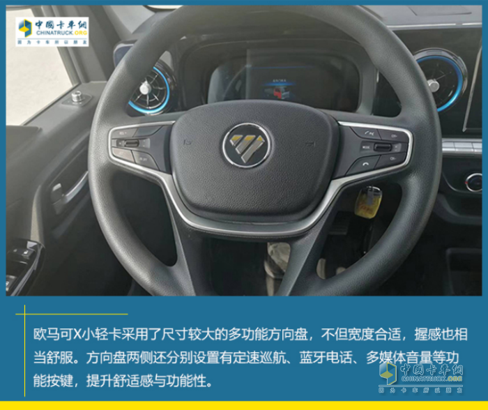 通風(fēng)加熱座椅的設(shè)計(jì),對(duì)一款輕卡來(lái)說(shuō)是極為高端的,全面提升用戶的駕駛舒適感不說(shuō),還能有效降低用戶的駕駛疲勞,讓行車更舒暢。多功能方向盤與液晶多媒體大屏的出現(xiàn),讓歐馬可X小輕卡更顯高端,妥妥的商用級(jí)別,乘用打造!