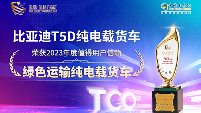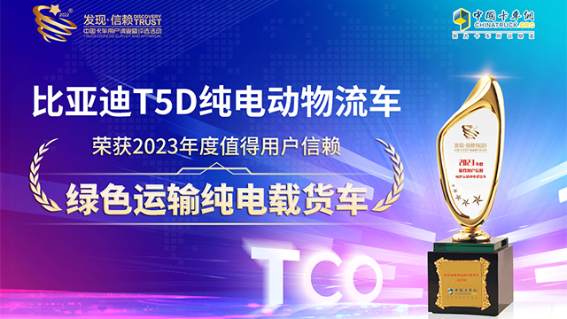 比亞迪T5D純電動(dòng)物流車榮獲2023年度值得用戶信賴綠色運(yùn)輸載貨車