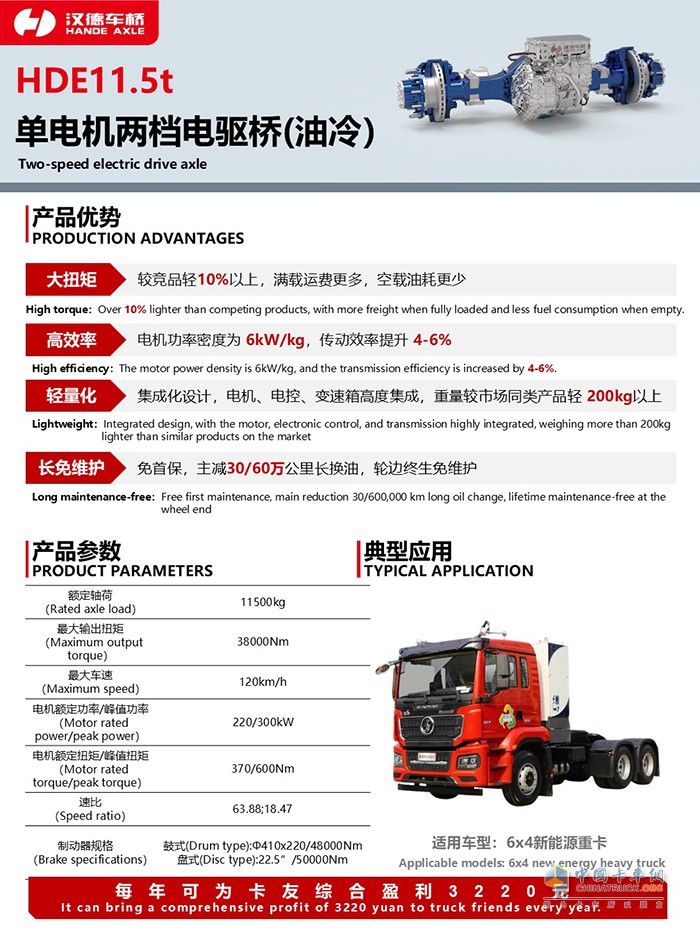 漢德HDE11.5t 單電機(jī)兩檔電驅(qū)橋(油冷)