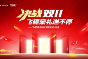 沒(méi)有人能抵擋買車的誘惑,如果能抵擋,一定是優(yōu)惠不夠“惠”,靚車不夠“靚”。飛碟汽車誠(chéng)意滿滿,在雙十一來(lái)臨之際,隆重舉辦“決戰(zhàn)雙十一,飛碟豪禮送不停”飛碟奧馳MV3預(yù)售啟動(dòng)會(huì)。