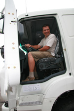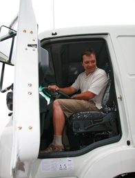 | 俄羅斯記者尤利卡很興奮的試駕了華菱重卡,推開車門高興地向等在車下的中俄記者伸出大拇指說:“nice!very