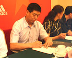 | 國家體育總局排球運動管理中心主任,中國排球協(xié)會副主席徐利先生在簽署協(xié)議書 |