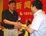 周建安:我覺得上柴選擇中國國家男子排球隊作為合作伙伴,非常具有典型特色,如果我是企業(yè)家的話,在參加2008年中的50支國家隊之中,誰會在2008年中成為亮點?我會選擇中國國家隊男排,這支隊伍,在2008年奧運會會具有一定的發(fā)展?jié)摿,我們覺得這支隊伍,在2008特別是在周建安教練的帶領(lǐng)下,在全國人民的支持下,這支隊伍會有一個非常大的進(jìn)步,這兩家能夠結(jié)合是最好的! |