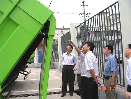 參加會(huì)議的市領(lǐng)導(dǎo)和各委辦領(lǐng)導(dǎo)參觀上海匯眾生產(chǎn)環(huán)衛(wèi)渣土車(chē)展示車(chē)