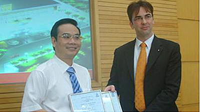 TUV頒獎(jiǎng)官向三一執(zhí)行總裁易小剛頒發(fā)CE證書